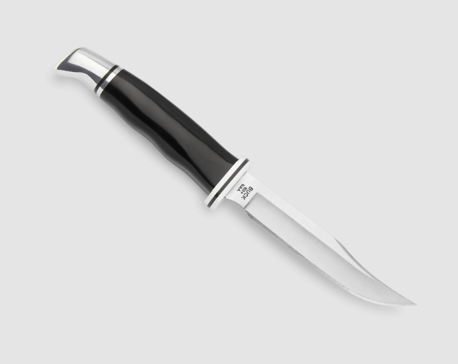 The classic 102 Woodsman® is a true hunting knife, designed with a fine clip blade perfect for fish and small game. Features include full tang construction, a finger guard integrated into the blade, thumb grip ridges, and a deep choil. Overall length: 7 3/4" (19.7 cm). Includes a genuine, leather sheath. Imported sheath.